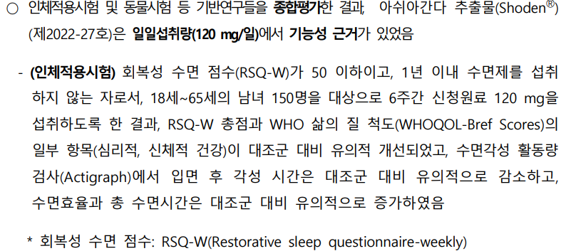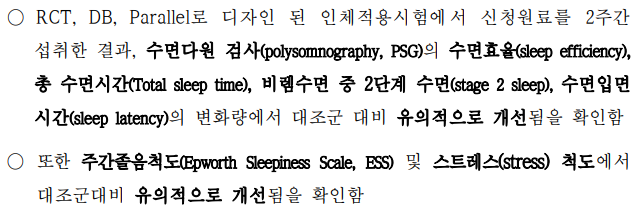 2. 수면 관련 건강기능식품 원료별 임체시험 결과